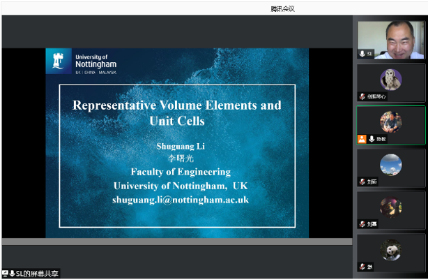 系列课程中,同学们与李曙光教授就复合材料单胞的建模、平移对称性以及复合材料力学未来发展等方面进行了交流研讨。同学们对此次课程给予了高度评价,同时对李曙光老师的精彩课程内容与耐心解答表示了感激。