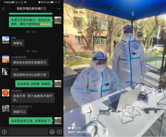 工会主席和麟,青年教师戴维、殷之平等协助完成核酸检测任务,民航研究院常务副院长李晨主动参加门卫值勤等任务,党总支副书记袁源带领学工队伍在疫情一线为学生送饭、值勤等,督促学生做好疫情防控工作和思想教育工作。还有吴向清、张哲、孟岭超等一批党员同志主动申请参加志愿抗疫服务。