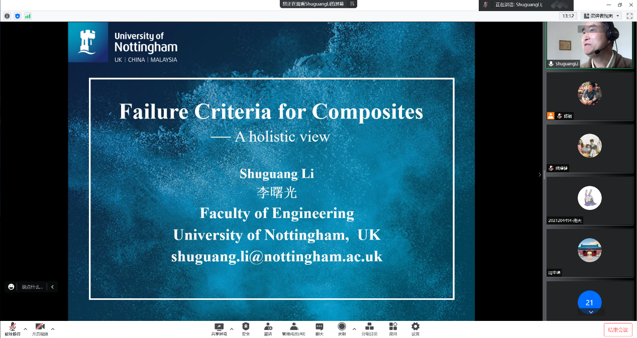 陈杨副教授邀请,英国诺丁汉大学李曙光教授于2022年7月4日至7日开展了题为“FailureCriteria for Composites”的线上学堂,本次课程依托MissAV
