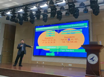 张传勇从民用航空器的全生命周期开篇,围绕民用航空器的初始适航和持续适航,详细讲述了民用航空器取得型号合格证、生产许可证的过程及与之相关的规章制度,并辅以自己近30年的民航领域生涯经历中的生动案例,内容丰富翔实,讲解深入浅出。他还以波音部分机型和ARJ21、C919的适航取证过程为例,对比了中美的民用航空管理机构、适航取证和管理等工作,进一步深化了同学们对中国民航事业发展现状和光明前景的认识,坚定了大家发奋学习、民航报国的决心。讲座结束后,与会师生意犹未尽,热情高涨踊跃提问,与主讲嘉宾交流近1小时。
