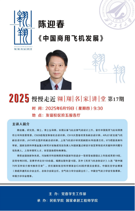 航宇学科的长期支持表示诚挚感谢,并简要介绍了陈迎春总师的学术背景及其主要学术成就。