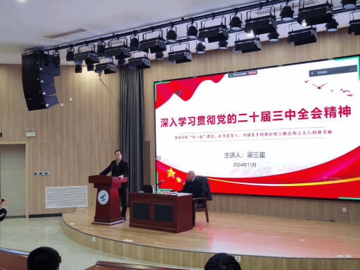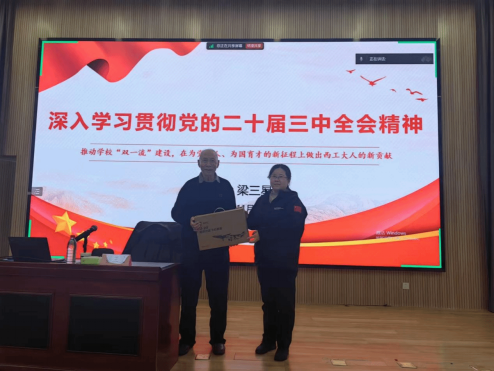 梁三星教授的专题党课由中共二十届三中全会公报主要内容、中共二十届三中全会《决定》的主要内容、贯彻全会精神推动西工大“双一流”建设三部分组成,内容丰富、话语生动,既有政策理论高度、又紧密结合MissAV