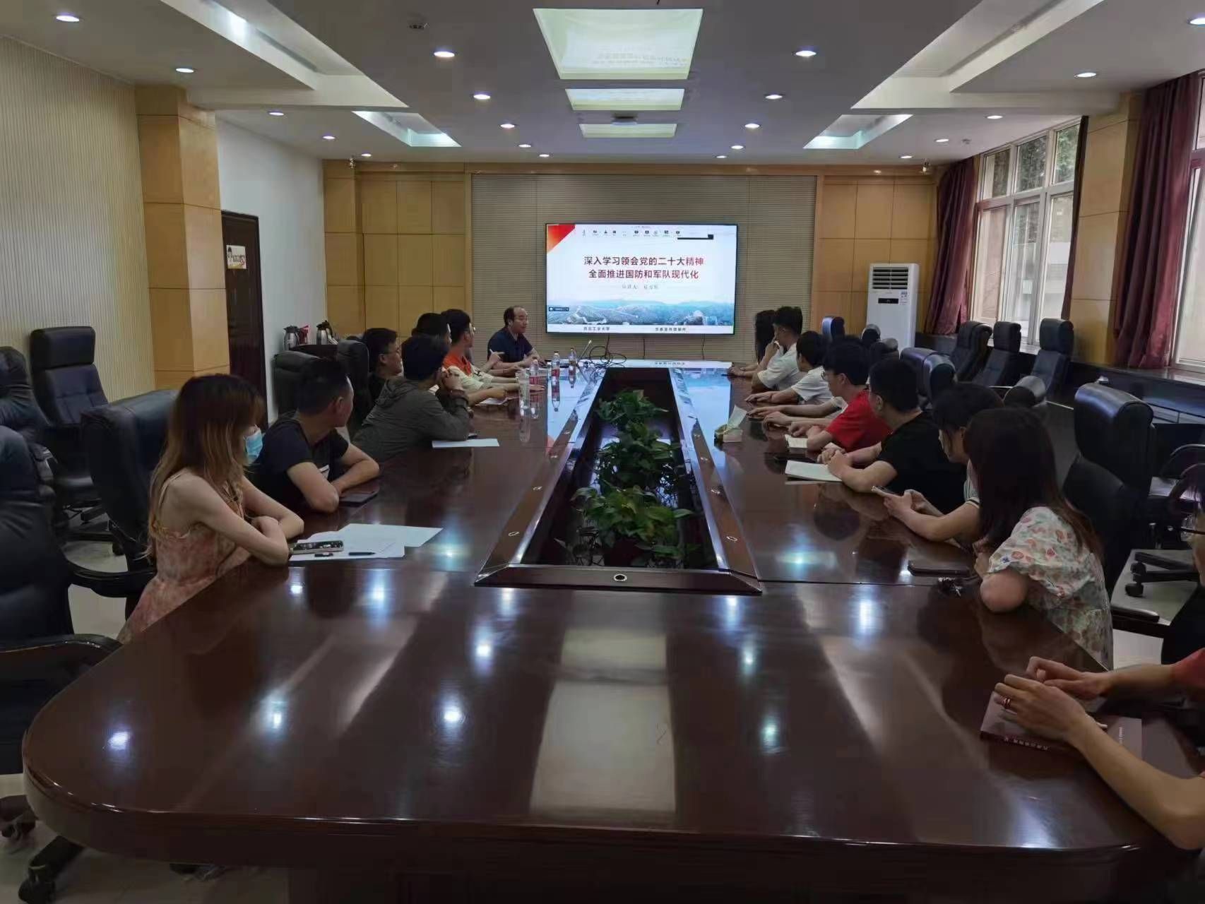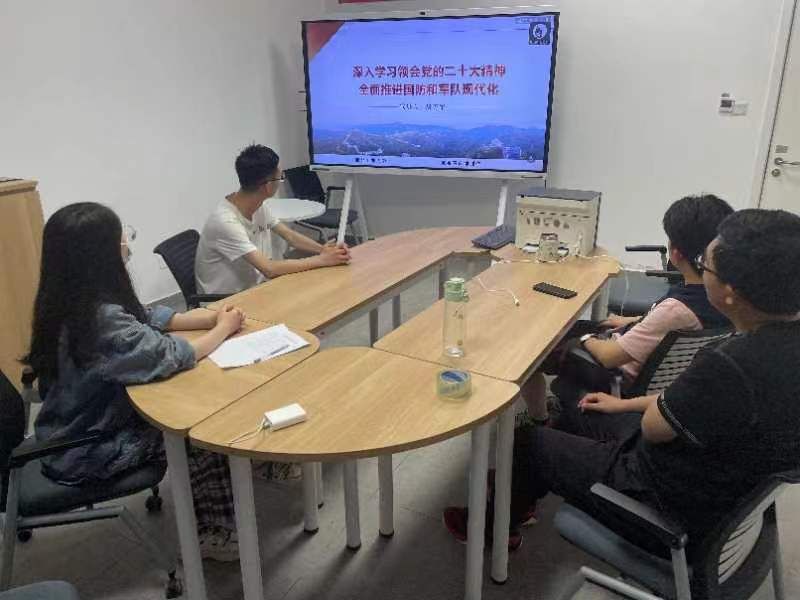 办公室主任易万军作《深入学习领会党的二十大精神,全面推进国防和军队现代建设》专题辅导报告。支部全体党员通过线下与线上相结合的方式参加了学习。