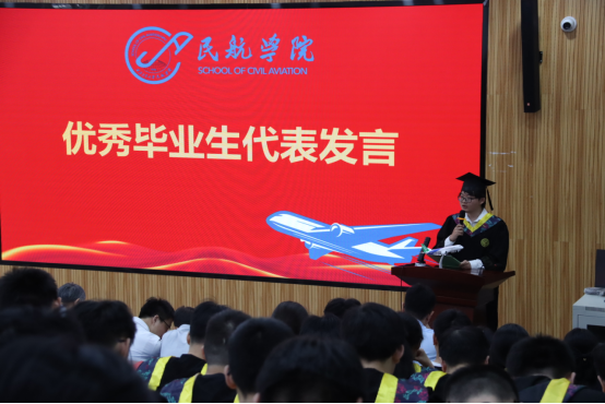 优秀毕业生发言代表王贝琳、张博远深情回顾了这四年的成长历程,感谢母校培养和师长教诲。他们表示,将带着西工大人的精神品格,以专业知识和责任担当投身民航事业,在新的人生阶段继续砥砺前行。
