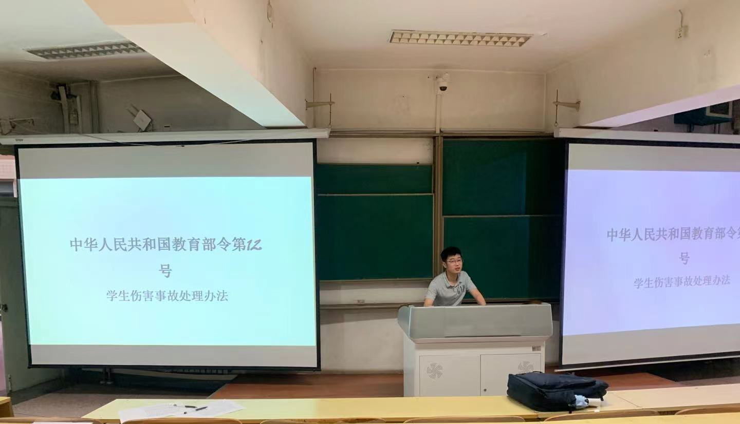 还召开了研究生假期安全教育大会,会议由研究生辅导员陈杨主持,全体硕士和博士研究生参会。会上,陈杨首先提醒学生尽快完成离校或留校申请,并强调假期期间要继续每日进行健康日报,然后对假期注意安全防护和谨防网络诈骗等进行了提醒。最后带领研究生学习了中华人民共和国教育部令第12号《学生伤害事故处理办法》。