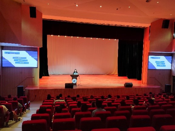 教学副院长张晓化及学生注册中心王丽娟老师在南山艺堂为同学们进行选课指导专题讲座。