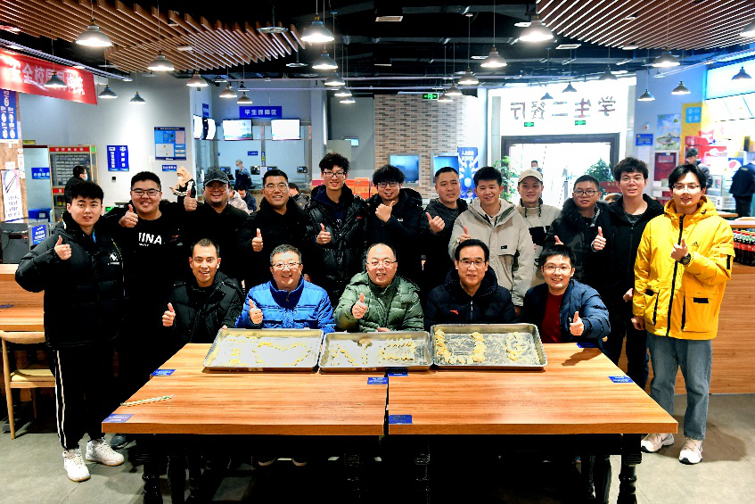 会议结束后,师生移步学生二餐厅,以包饺子的方式共迎新春佳节。大部分同学都是第一次在外过新年,部分同学还不会包饺子。老师们一边手把手教同学们包饺子,一边和大家拉家常。经过临时培训,最终每名同学都学会了至少一种饺子的包法。同学们把自己包好的饺子摆放成I爱NPU的形状,表达他们对MissAV