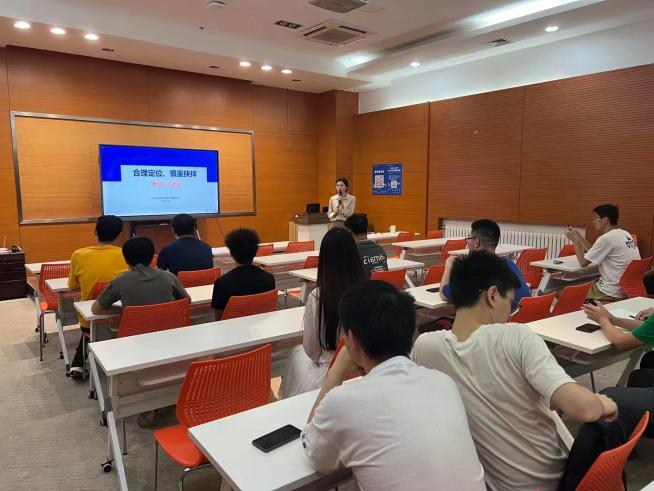 会上,朱莉老师首先就大家普遍面临的“考研还是就业”的选择问题,提出了“合理定位、慎重选择”的建议,引导大家思考本科毕业后的发展问题。随后,她从考研形势逐年严峻、“二战上岸”比例低、未来成长与学历的关系等三方面,向大家提供统计数据和分析材料,分享相关情况。最后,她向大家介绍了考公务员、军官直招、应征入伍等除考研和到企业就业之外的其他发展道路。