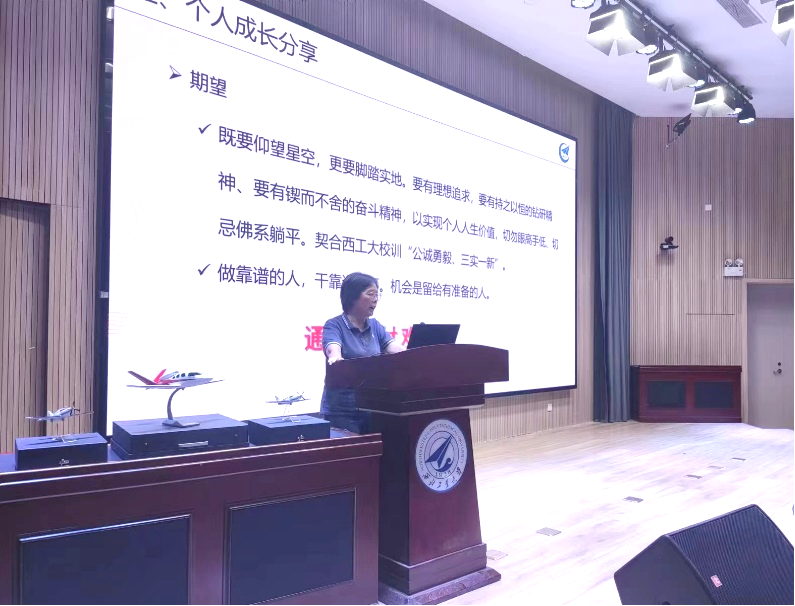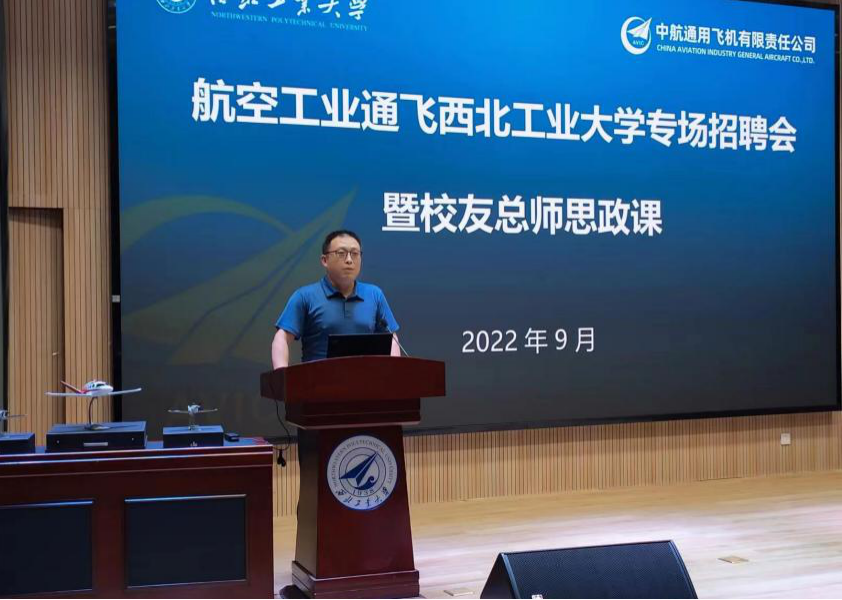 随后,高兰宁校友和刘东辉校友分别以“复合材料在通用飞机的应用及发展”和“通用飞机发展及研发流程”为主题,结合自己在西工大的学习经历和工作中的感悟、成长等,为现场全体同学讲授了别开生面的思政课,对同学们在思想素质、技术、能力等各方面提出了希望和建议。