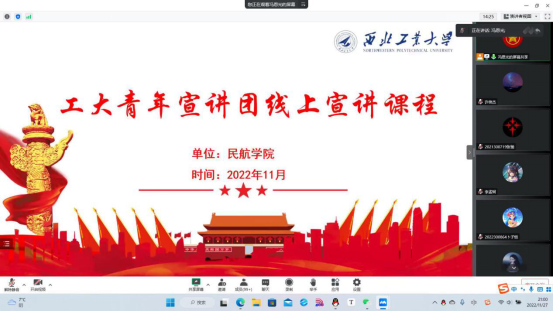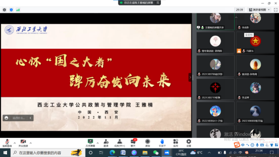 讲师们宣讲的党的二十大精神、国之大者和西工大精神等内容让我很受触动。作为一名共青团员的我们,一定会更加自觉按照党指引的方向健康成长、践行“请党放心、强国有我”的青春誓言,作为西工大学子的我们也一定会带着“公诚勇毅”校训的烙印,去续写报效国家的隽永篇章!
