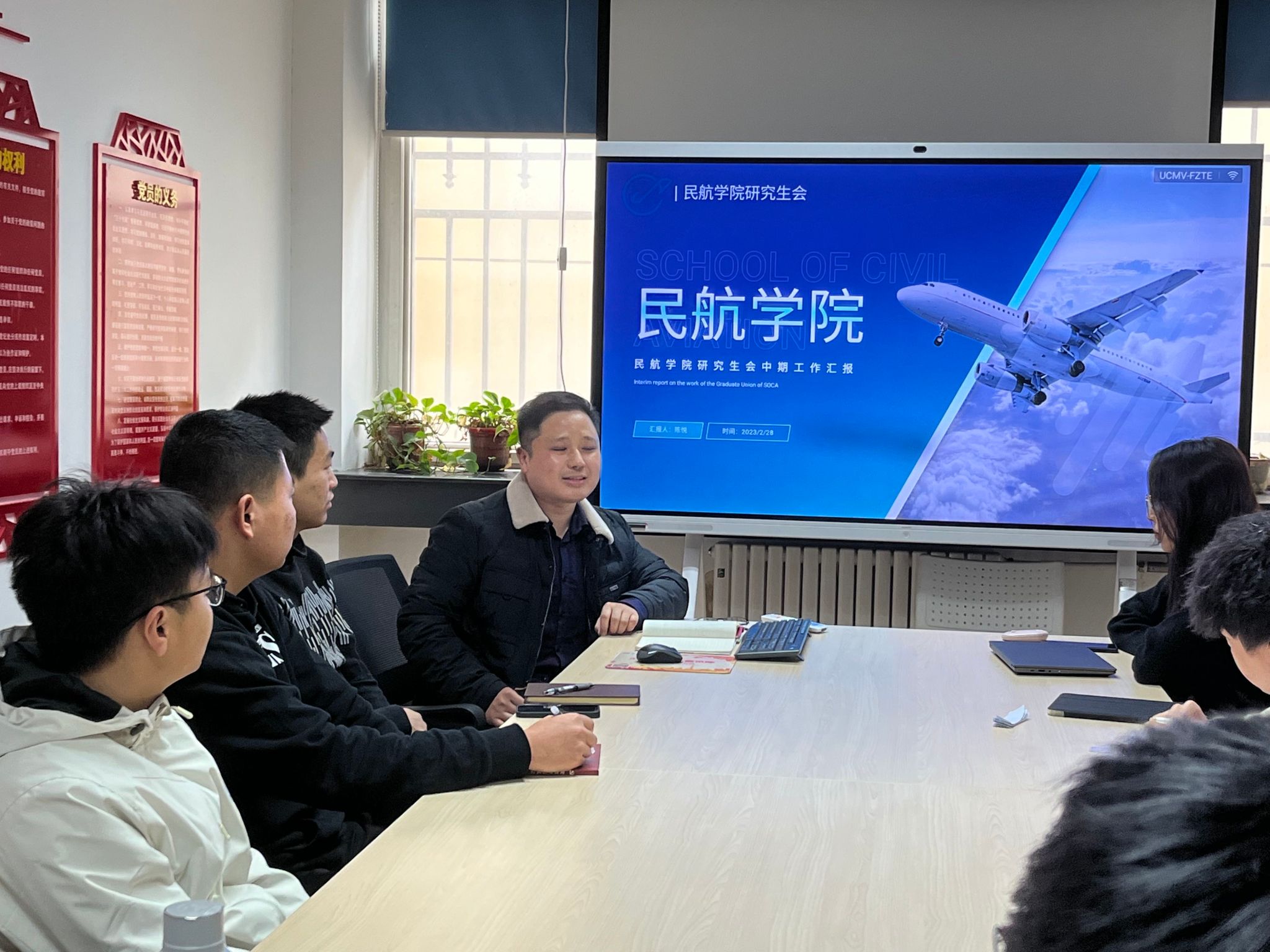 接着,各部门负责人结合部门工作进行汇报,主席团成员陈悦、杨翰明和姜越凡对各部门工作进行了点评和总结,上学期的“民航杯”、新生破冰活动和寝室文化建设活动在全体成员的合作下圆满完成。上学期防疫管理期间,研会各部门的同学都为维护校园稳定管理和学生安全方面尽了一份力。同时,主席团针对当前工作中的不足之处,提出了改进措施。