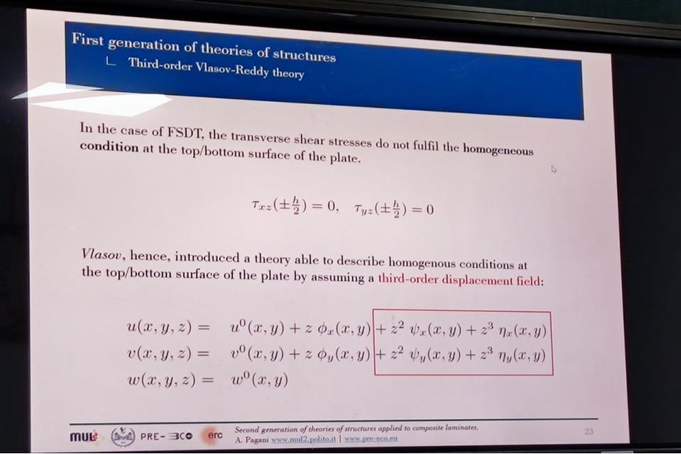 师生作了题为《Secondgeneration of theories of structures applied to compositelaminates》的专题报告。他结合对复合材料层合板结构等方面的研究,首先回顾了复合材料层合板的第一代结构理论,分析了其优势以及需要改进的不足之处。随后,介绍了正在探索的第二代结构理论,并提供了实现从微观到宏观尺度具有可扩展和高精度的高阶有限元的可能性。最后AlfonsoPagani副教授通过问答的形式,对层合板结构中的详细应力分析和失效行为、纤维增强复合材料的多尺度渐进失效、屈曲和后屈曲等方面,与线上师生做了沟通和交流。