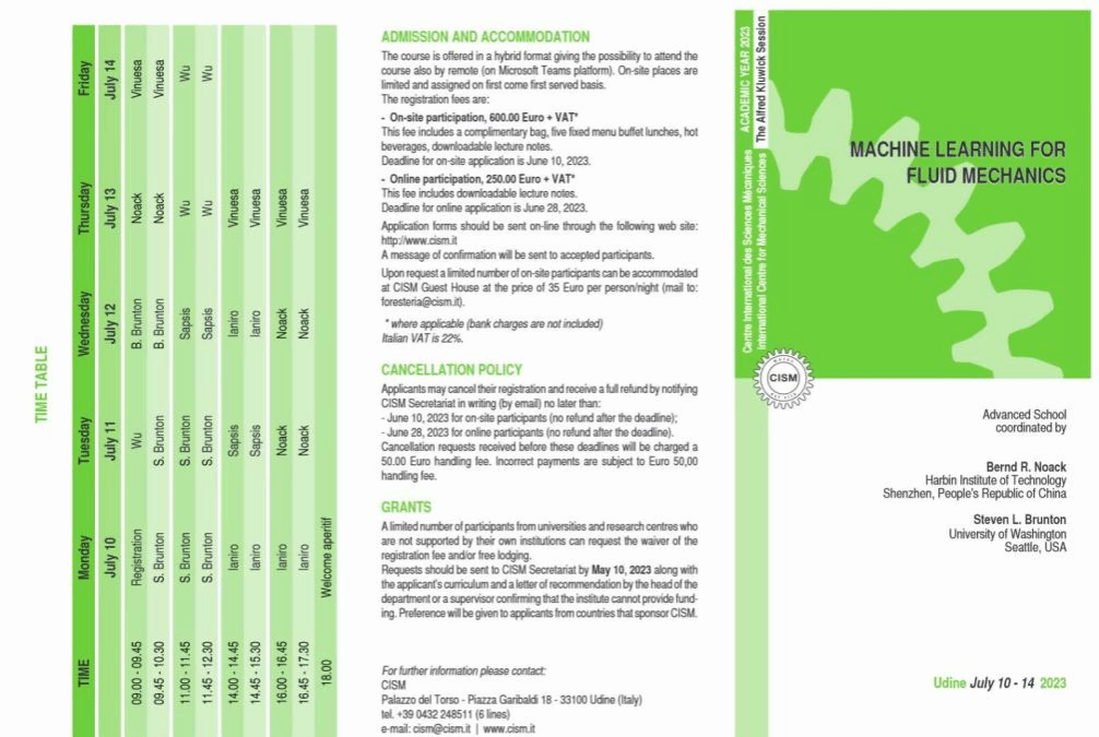 7月10-7月14日,MissAV 教师邬晓敬受邀参加了由国际机械科学中心组织举办的主题为 MACHINE LEARNING FOR FLUID MECHANICS的高级暑期课程。此次活动面向机器学习和流体力学交叉领域研究,邀请了来自Massachusetts Institute of Technology(麻省理工MissAV )、University of Washington(华盛顿大学)、Universidad Carlos III de Madrid(马德里卡洛斯三世大学)、KTH Royal Institute of Technology(瑞典皇家理工MissAV )、哈尔滨工业大学、MissAV 等国际顶尖高校教授们做专题授课,讲授机器学习在流体力学中的应用和最新研究成果,促进国际学术界的交流与合作,为流体力学和机器学习的前沿研究提供新的思路和方向。